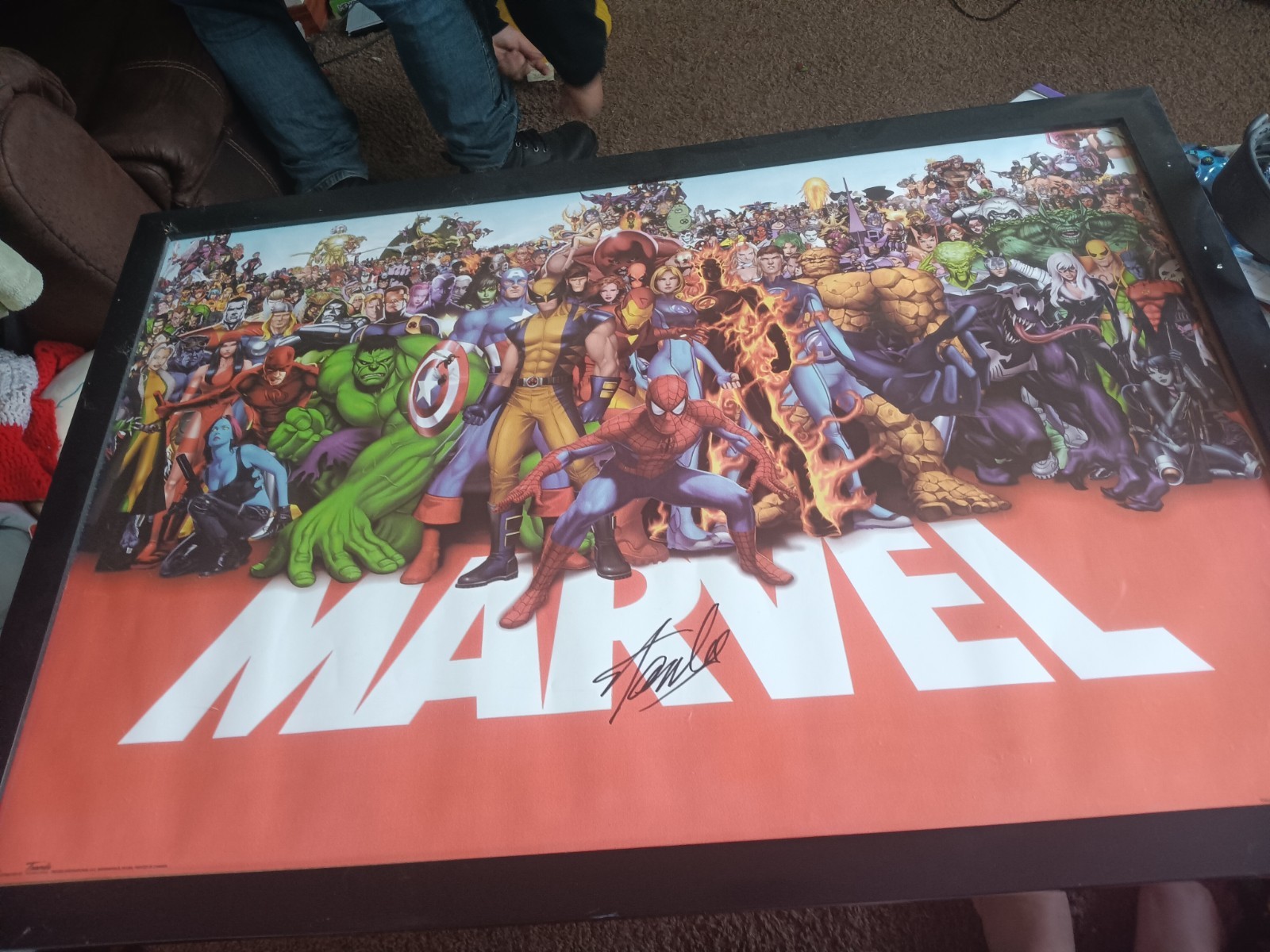 This product is a framed Marvel poster signed by Stan Lee, featuring the iconic characters of the Marvel Universe. As an original limited edition piece, this large-sized poster is a must-have for any Marvel fan or collector. The autograph from the legendary Stan Lee adds an extra layer of value and sentimental significance to this unique item. Displaying this piece in your home or office would make for a striking and nostalgic addition to any space.