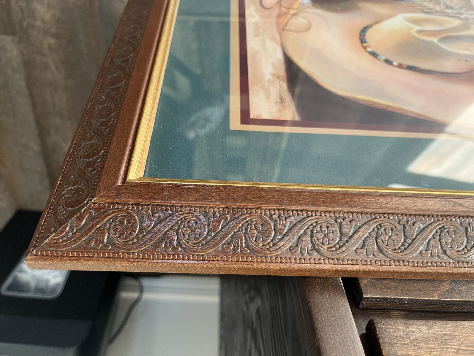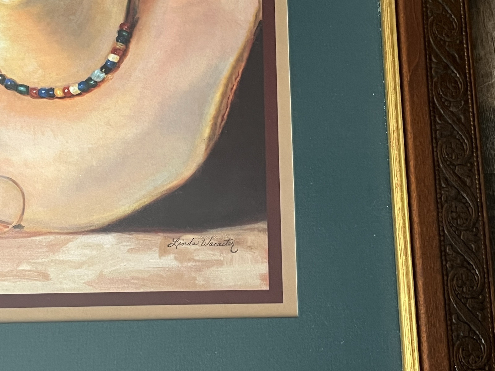 Enhance your living space with a touch of the wild west through Linda Wacaster's captivating print, elegantly framed and matteed. Measuring 19 inches in length and 23 inches in width, it is a medium-sized artwork that makes a statement without overwhelming your decor. The print, showcasing intricate details of a cowboy's attire, is presented in a style that reflects the rich heritage of the American West. It's a perfect addition for those who appreciate the timeless appeal of western themes, and it's designed to complement a variety of interior styles, from rustic to contemporary. The artwork is from the Home Interiors collection.