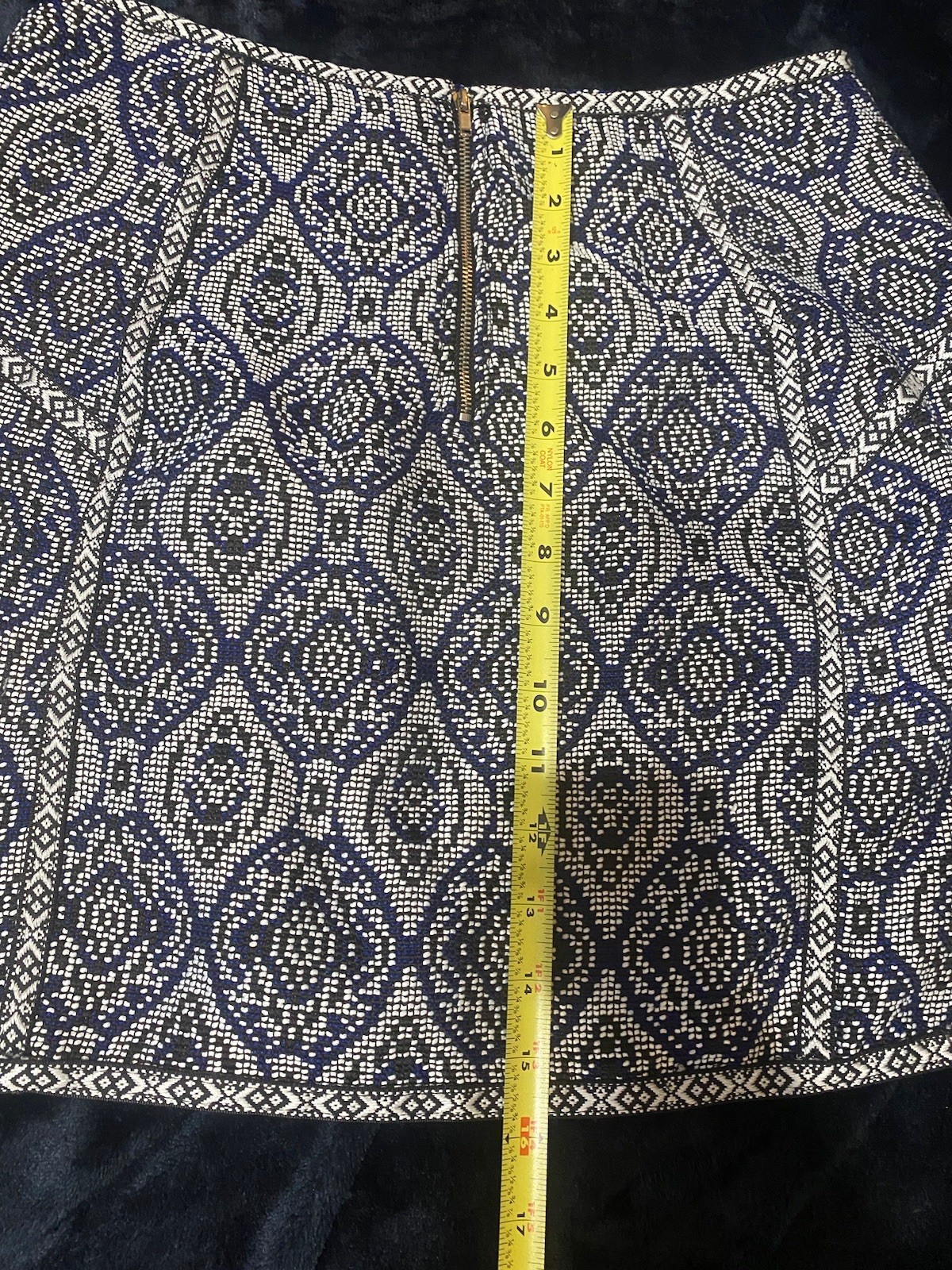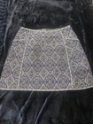 The product is a Francesca's mini skirt in a tribal pattern, featuring a zip closure and made of polyester material. It is suitable for both party and casual occasions, with a vibrant blue color and a short skirt length, perfect for the warmer seasons of spring and summer. The tribal theme adds a unique and edgy touch to the skirt, making it a stylish addition to any woman's wardrobe.