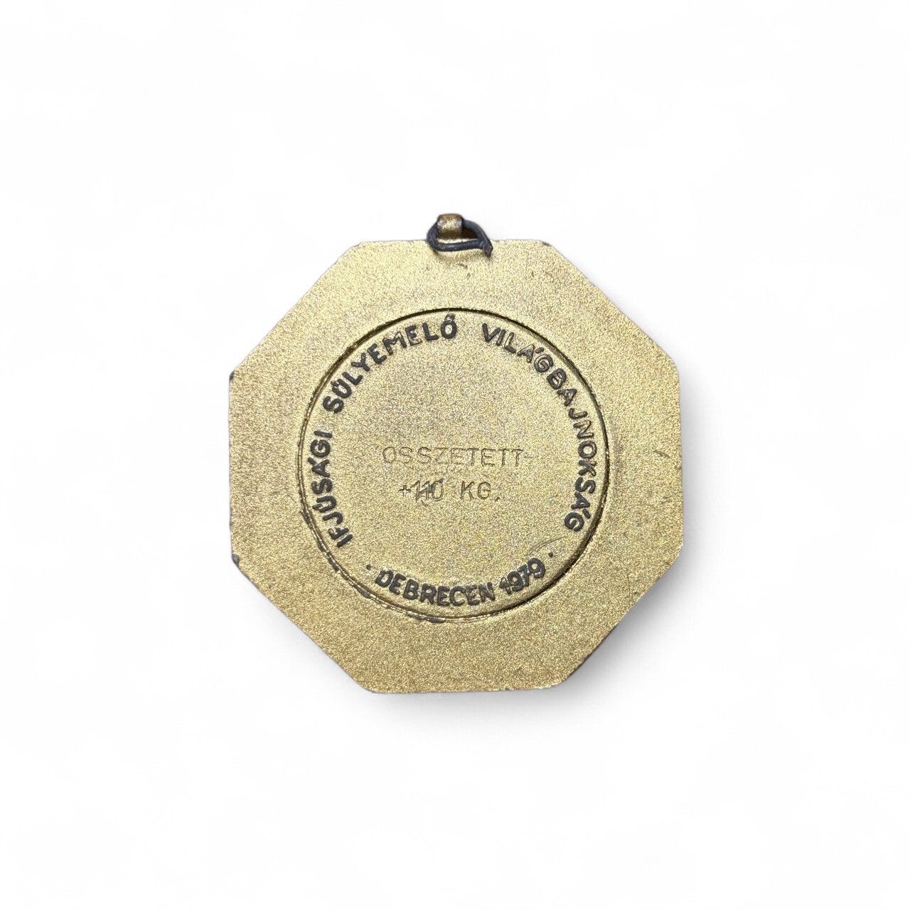 Official Medal – Junior World Weightlifting Championships, Debrecen 1979 This official medal belonged to Cuban weightlifter Francisco Méndez Nosti , who competed in the +110 KG category at the 1979 Junior World Championships in Debrecen, Hungary , one of the most important youth events organized under the IWF during that era. Event: Junior World Weightlifting Championships – Debrecen, Hungary – 1979 Discipline: Olympic Weightlifting – Youth / +110 KG Athlete: Francisco Méndez Nosti (Cuba) Organization: IWF (International Weightlifting Federation) Material: Gold-tone alloy, octagonal design with raised laurel motif Condition: Authentic piece with original period patina Historical significance: During the late 1970s, Cuba emerged as a rising force in international Olympic weightlifting. This rare medal is a genuine artifact from a World Championship event, connected to a member of that generation. A valuable collectible for serious memorabilia buyers, IWF historians, and collectors of Cuban sports history. Francisco Méndez Nosti (born December 3, 1956, Pinar del Río, Cuba) is one of the most prominent super heavyweight weightlifters in Cuban history. A member of the national team from 1973, he built an outstanding career that includes 10 national titles, 2 Central American championships, 2 Pan American Games, 5 Pan American Championships, 8 World Championships, and the 1980 Moscow Olympic Games , in addition to achieving 126 records —among them 18 world records — and earning 168 medals , 96 of them in international competitions. He was also the first man in the Americas to surpass a 400 kg total , competing in more than 20 countries. Méndez Nosti graduated in Physical Culture and later specialized in Sports Methodology, Olympic Weightlifting, and Therapeutic Physical Culture. After retiring from competition, he served as a professor, coach, and sports methodology specialist, later contributing in Mexico with various athletic and academic institutions. He also founded his own gym, where he trained high-performance athletes and youth Olympic medalists. Medalla Oficial – Campeonato Mundial Juvenil de Halterofilia, Debrecen 1979 Esta medalla oficial perteneció al halterista cubano Francisco Méndez Nosti , participante en la categoría +110 KG durante el Campeonato Mundial Juvenil de 1979 , celebrado en Debrecen, Hungría, uno de los eventos juveniles más prestigiosos organizados bajo la IWF en esa época. Evento: Campeonato Mundial Juvenil de Halterofilia – Debrecen, Hungría – 1979 Disciplina: Halterofilia Olímpica – Juvenil / +110 KG Atleta: Francisco Méndez Nosti (Cuba) Organismo: IWF (International Weightlifting Federation) Material: Aleación dorada, diseño octagonal con motivo de laureles en relieve Estado: Pieza auténtica con pátina original de época Importancia histórica: A finales de los años 70, Cuba comenzó a consolidarse como potencia ascendente en la halterofilia internacional. Esta medalla es una pieza auténtica y poco común proveniente de un Campeonato Mundial, vinculada a un atleta de esa generación. Un objeto valioso para coleccionistas serios, historiadores del deporte y amantes de la memorabilia olímpica. Francisco Méndez Nosti (Pinar del Río, Cuba, 3 de diciembre de 1956) es una de las figuras más destacadas de la halterofilia cubana de la categoría superpesada. Integró el equipo nacional desde 1973 y desarrolló una trayectoria excepcional: 10 campeonatos nacionales, 2 Centroamericanos, 2 Juegos Panamericanos, 5 Campeonatos Panamericanos, 8 Campeonatos Mundiales y los Juegos Olímpicos de Moscú 1980 , además de 126 récords —incluyendo 18 mundiales — y un total de 168 medallas , 96 de ellas en el ámbito internacional. Fue además el primer hombre en América en superar los 400 kg en total , compitiendo en más de 20 países. Licenciado en Cultura Física (ESEF, Pinar del Río), se especializó en Metodología Deportiva y Levantamiento de Pesas en Moscú y en Cultura Física Terapéutica en Cuba, continuando posteriormente como entrenador, docente y metodólogo. En México colaboró con diversas instituciones deportivas y académicas, además de fundar su propio gimnasio, donde formó a atletas de alto rendimiento y medallistas juveniles.