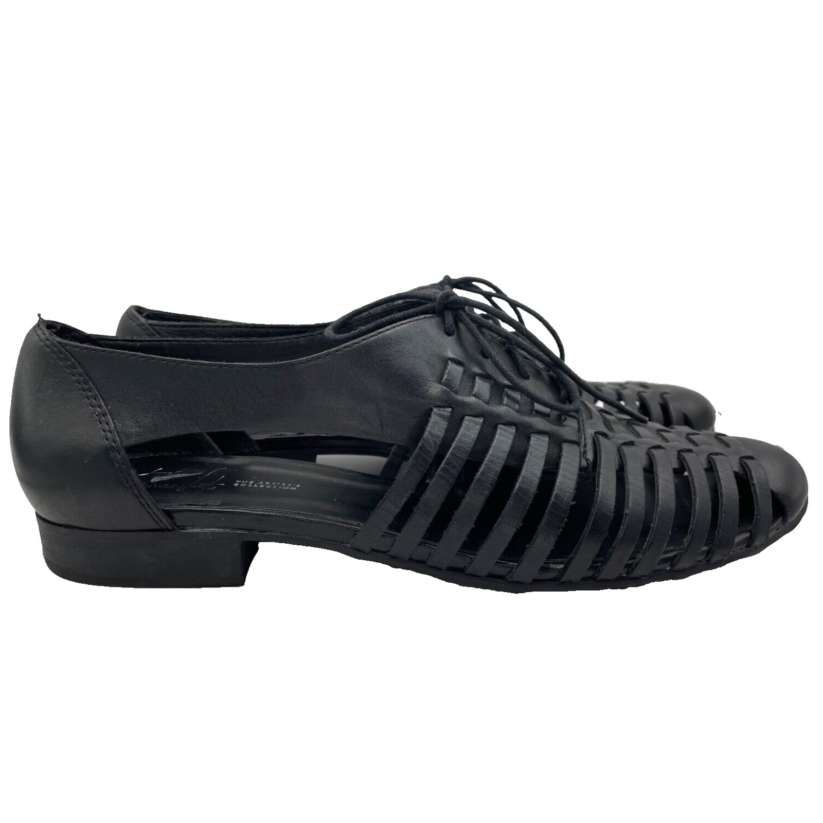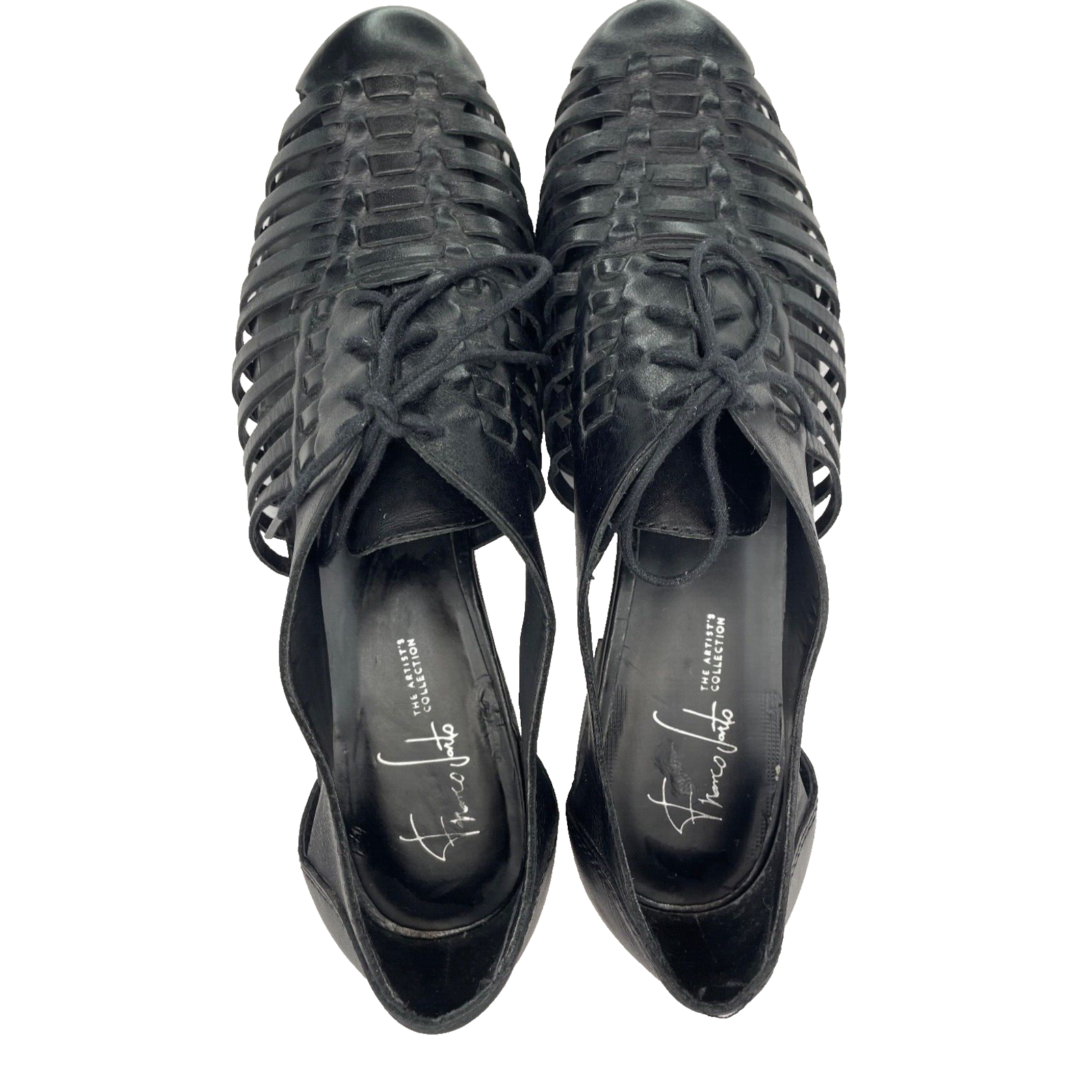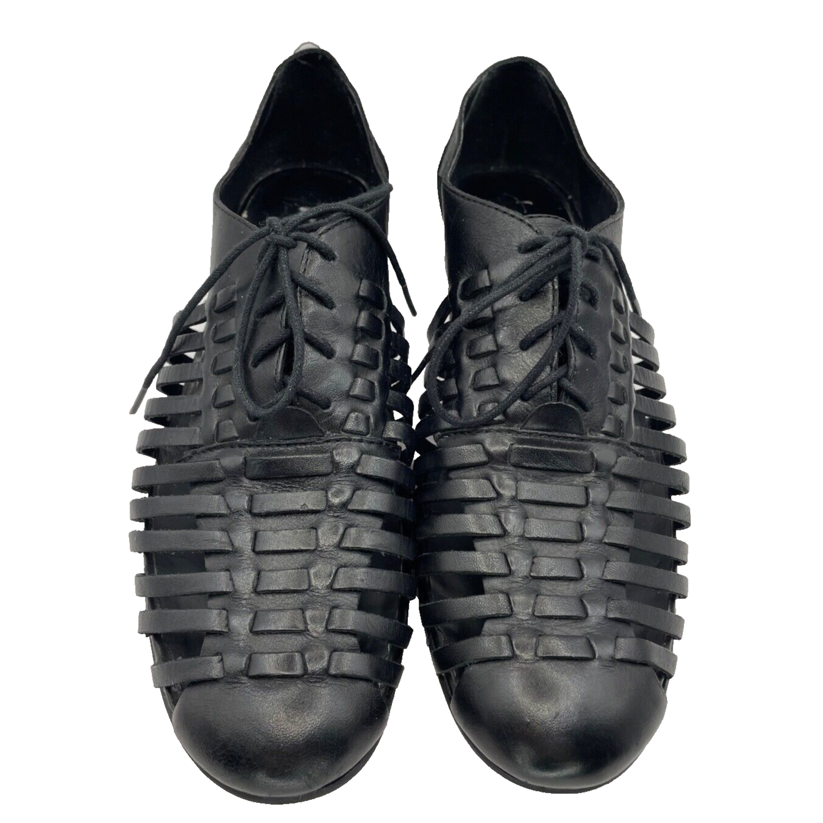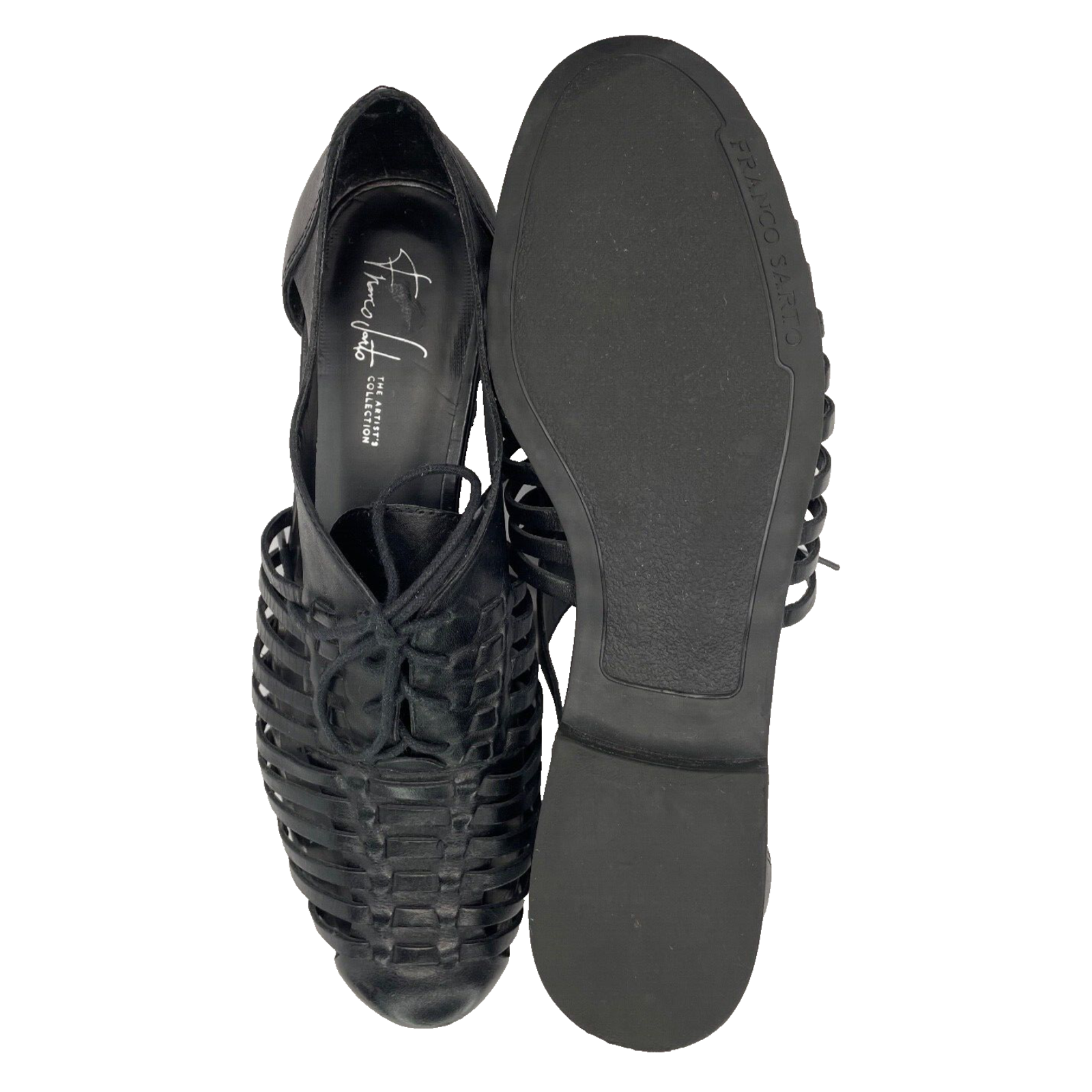 Step out in style with these Franco Sarto black woven leather oxford style lace-up shoes. Perfect for any occasion, whether it be travel, casual, workwear, or business, these shoes are sure to keep you comfortable and fashionable all day long. The almond toe shape and straps add a touch of elegance to these flats, while the breathable features make them ideal for summer, fall, or spring. Crafted with synthetic lining material and faux leather upper and insole material, these shoes are durable and comfortable. The outsole is made of leather, ensuring a strong grip on any surface. Enjoy these shoes without worrying about customization or condition. Order now and step up your shoe game! These interesting oxfords are in great pre-owned condition. However there is a small imperfection on the sole, please refer to pictures.