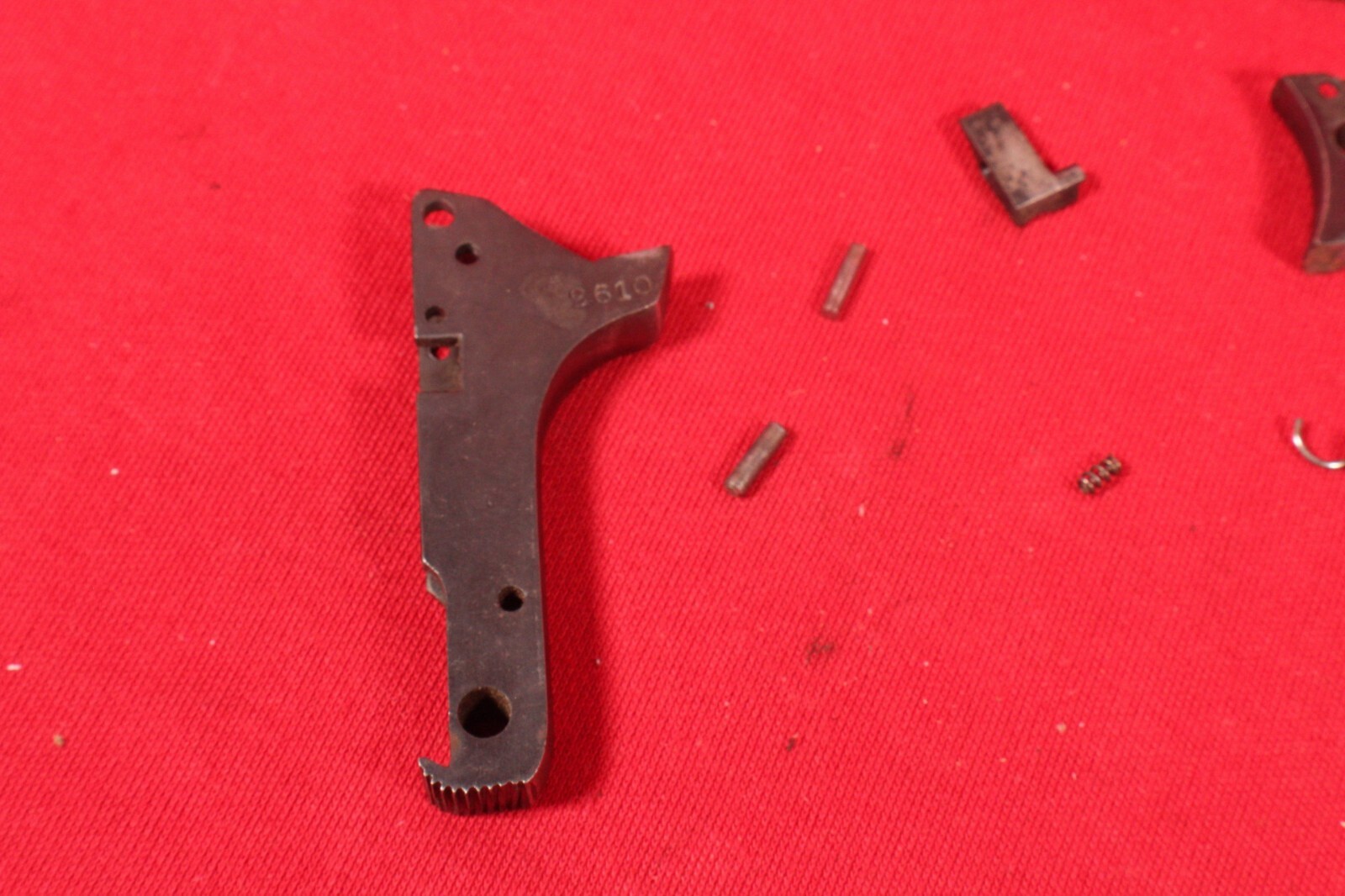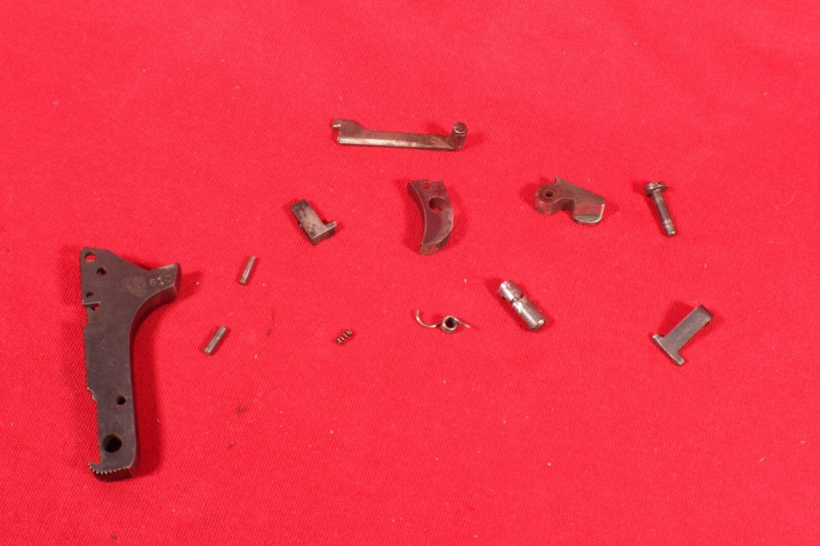 Francotte model E of Belgium small parts, pins, springs, back strap, trigger, hammer, screw (everything pictured). Unobtanium