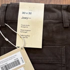 These Frank and Oak pants are The Joey Straight Moleskin style in Dark Taupe. They are a size 30 with a 32-inch inseam. The pants feature a solid pattern, zip closure, and are made of a Spandex and Cotton Blend material. They are designed with a flat front, stretch fabric for comfort, and are ideal for various occasions like travel, casual wear, work, or business attire.