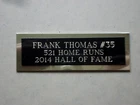 THIS AUCTION IS FOR THE NAMEPLATE ONLY !!!!!!! BOBBY'S HANG-UPS PREMIUM QUALITY ACRYLIC DISPLAY CASES AND CUSTOM ENGRAVED NAMEPLATES SINCE 1999 THESE NAMEPLATES ARE GREAT FOR DISPLAY CASES, FRAMED AND MATTED PHOTOS AND JERSEYS, SHADOW BOXES, PLAQUES, ETC. WE SPECIALIZE IN CUSTOM ORDERS OF ALL NAMEPLATES. WHETHER IT'S FOOTBALL, BASEBALL, BASKETBALL, HOCKEY, GOLF, BOXING OR ANY PERSONALIZED NAMEPLATE THAT YOU MAY NEED. WE CAN MAKE JUST ABOUT ANY NAMEPLATE THAT YOU ARE LOOKING FOR. PLEASE LIMIT THE AMOUNT OF TEXT TO 3 LINES ON THIS SIZE NAMEPLATE. OUR NAMEPLATES ARE TRIPLE ENGRAVED TO GUARANTEE CRISP, READABLE TEXT. NAMEPLATES ARE HAND POLISHED BEFORE SHIPPED TO MAKE SURE THE ENGRAVING REALLY STANDS OUT. ALL NAMEPLATES HAVE HIGH QUALITY DOUBLE SIDED TAPE TO ENSURE IT WILL STAY IN PLACE. CLICK HERE AND GO VISIT OUR EBAY STORE FOR MORE GREAT ACRYLIC DISPLAY CASES AND ENGRAVED NAMEPLATES !!!! PLEASE CHECK OUT OUR EBAY STORE, AND CHECK OUT ALL OF OUR ACRYLIC DISPLAY CASES AND NAMEPLATES. IF YOU DON'T SEE THE NAMEPLATE YOU ARE LOOKING FOR OR IF YOU ARE LOOKING TO PLACE A CUSTOM ORDER, PLEASE FEEL FREE TO EMAIL US AND WE WILL GET WORKING ON YOUR ORDER RIGHT AWAY. THANK YOU! THIS PURCHASE IS FOR A FRANK THOMAS NAMEPLATE. IT IS BLACK ON BRASS BACKED ON POLISHED GOLD PLATING. THE NAMEPLATE MEASURES APPROX 1"x 3" IN TOTAL WITH ENGRAVED TEXT THAT READS: FRANK THOMAS #35 521 HOME RUNS 2014 HALL OF FAME IF YOU ARE PURCHASING DIFFERENT TEAM OR PLAYER NAMEPLATES, AND DIFFERENT SIZES AT THE SAME TIME, PLEASE USE THE SHOPPING CART FEATURE AND PLEASE REQUEST A TOTAL BEFORE MAKING PAYMENT TO ENSURE YOU GET THE PROPER COMBINED SHIPPING DISCOUNT. Be sure to add me to your favorites list ! DON'T FORGE T TO LIKE, FOLLOW AND SHARE US ON FACEBOOK TO GET NEWS ON ALL OF OUR NEW RELEASES https://www.facebook.com/bobbyshangups