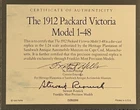 Here’s The Franklin Mint 1912 Packard Victoria Precision Model Replica plus it’s Custom Display Case that were exclusively offered separately in 1990 to Franklin Mint Club Members. In the early 1900’s, Packard’s were highly regarded for the company’s superior craftsmanship and prestigious elegance. The interior consisted of luxurious tufted upholsteries, custom-wood dashboards, and an abundance of comfort options. This was the first Packard to be equipped with a powerful 6-cylinder engine capable of producing 74 horsepower with a top speed of 80 miles per hour and could accelerate from 0-60 miles per hour in just 30-seconds. Includes the Certificate of Authenticity, Hang Tag, Care and Handling Instructions, Technical Specifications Data, The Packard’s Story, Both Engine and Driving Compartment Layouts, and Customized Display Case. Take advantage of this opportunity to add this Franklin Mint Packard in stunning pristine like-new condition plus the Franklin Mint Custom Display Case to your collection today.