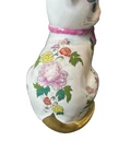 Adorable "Imperial Puppy of Satsuma" and " Royal Kitten of Prosperity" were designed by renowned artist Yuki Morioka for Franklin Mint in 1987 and 1988 respectively. They are made of fine porcelain and are hand decorated with 24K gold. The puppy is approximately 6" tall and 8" long. The kitten measures approximately 7 5/8" in height and is 5 1/4" wide. Free of chips or cracks. Some minor age related wear to gilt (please refer to photos).