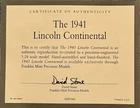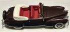 Here is Franklin Mint’s Luxurious 1941 Lincoln Continental Convertible Precision Model Replica offered exclusively in 1992 to their Franklin Mint Club Members. Hand-assembled and hand-finished to exact Lincoln Motor Company original specifications. Painted in their Maroon Color with soft red interior and sparkling chrome makes this car as realistic as it gets. Includes a comprehensive list of documents and protective containers, starting with the Signed Certificate of Authenticity, Hang Information Tag, The Care and Handling Instructions, Technical Specifications Data, Lincoln Continental Story, Both Engine and Driving Compartment Layouts, Custom Styrofoam Container, and Shipping Box. Take advantage of this opportunity to add this 33-Year Old Franklin Mint model replica to your collection today. This Franklin Mint model and all that’s included with it makes this purchase a great investment. Note: slight paint imperfections on the body but still displays well.
