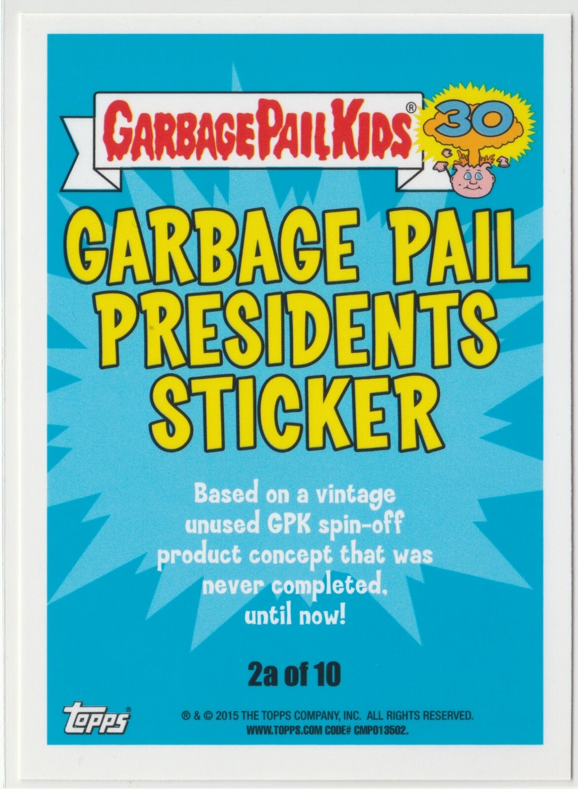 Franklin Pierced #2a of 10 Topps Garbage Pail Kids GPK 2015 30th Anniversary Series Garbage Pail Presidents Sticker subset personal stock photos centering of card may vary compared to listed images
