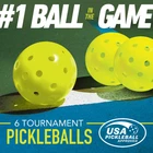 The 40 holes on each pickleball ensure steady flight patterns and reliable spin on every ball for a consistent feel to your pickleball games. The ultra-durable polyethylene rotationally molded one piece construction prevents denting and cracking even on outdoor courts, so you can keep playing all season long. The optic yellow X-40 balls deliver a superb flight path thanks to the precision of our machine drilled holes. Perfectly weighted and sized, these balls will certainly impress anyone on the court! The X-40 is now the Official Ball of the US Open! OFFICIAL SIZE AND WEIGHT: 26 gram weight; 74mm diameter INCLUDES (6) X-40 optic yellow balls. Take your game to the next level indoor or outdoor! ONE-PIECE construction with rotational molding creates a stronger, long lasting ball USA Approved for outdoor tournament pickleball play. Official Ball of the US Open Pickleball Championships BALANCED flight pattern due to 40 precisely machine drilled holes Assembled Product Dimensions (L x W x H) 2.90 x 2.90 x 2.90 Inches On Aug 20, 2024 at 00:53:39 PDT, seller added the following information: On Oct 21, 2024 at 05:09:09 PDT, seller added the following information: