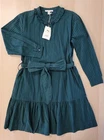 The Free Assembly Women's Tiered Belted Mini Dress in Forest Biome Stripes is a stylish and versatile piece perfect for a variety of occasions. Made from 100% cotton, this dress features a crewneck with a keyhole detail, long sleeves with button cuffs, and a pullover closure for easy wear. The layered design and belted waist add a trendy touch to this short dress, making it ideal for travel, parties, casual outings, or even business events. With its colorful striped pattern and unique accents, this dress is a must-have for any fashion-forward woman's wardrobe.
