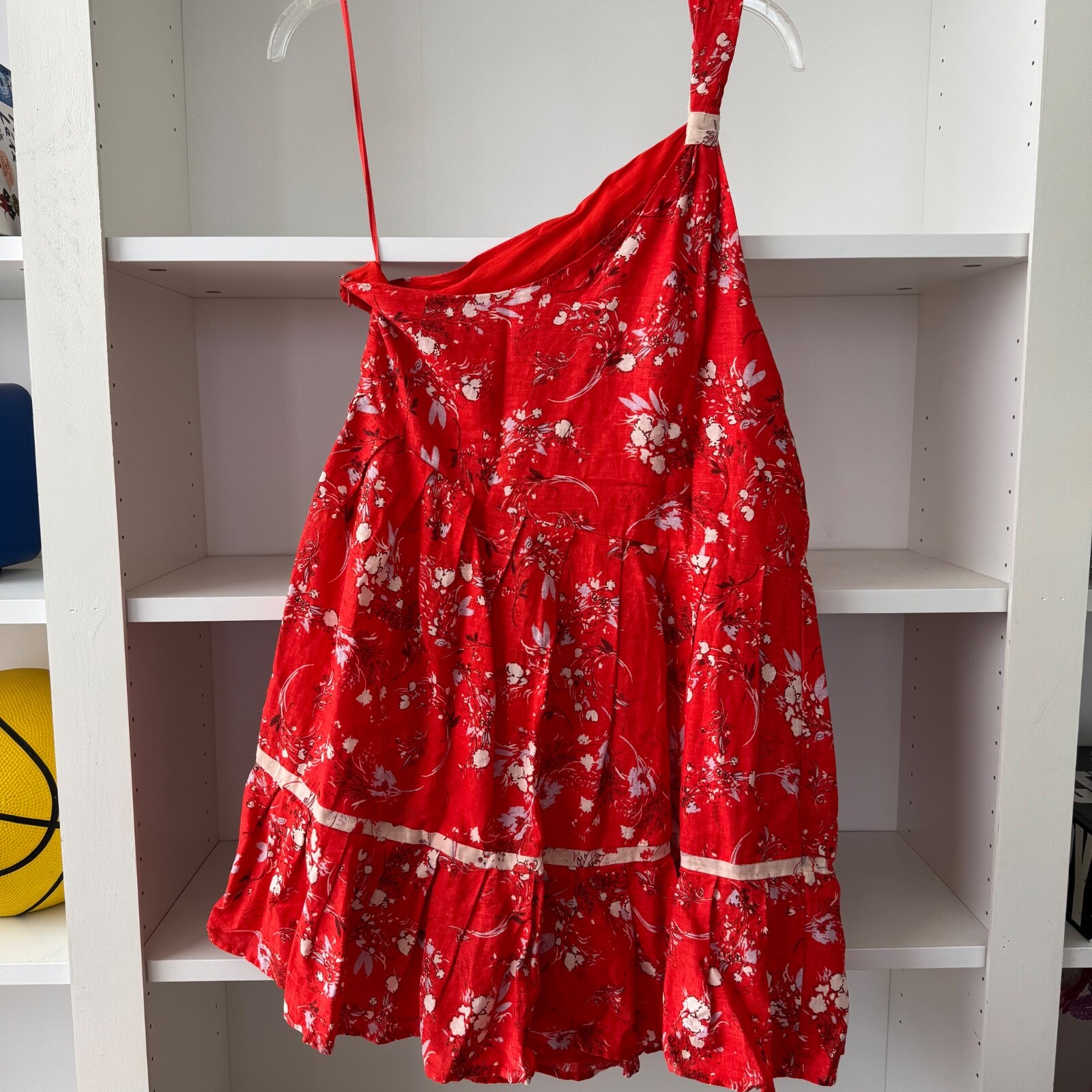 Self: 55% linen, 45% rayon. Lining: 100% rayon. Fully lined. Lightweight fabric. Hidden side zipper closure. Pleated skirt. OB967019. Size small. Great condition, no major flaws
