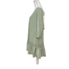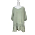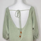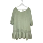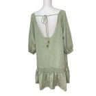 Free People BEACH Light Sage Green Open Back Smocked Oversized Mini Dress Oversized, slouchy, relaxed silhouette Wide scoop neck Open in back with beaded tie closure Smocked and gathered near bottom 3/4 sleeves Side seam pockets Size small *approximate measurements: Pit to pit- 24” Length- 32” *excellent preowned condition