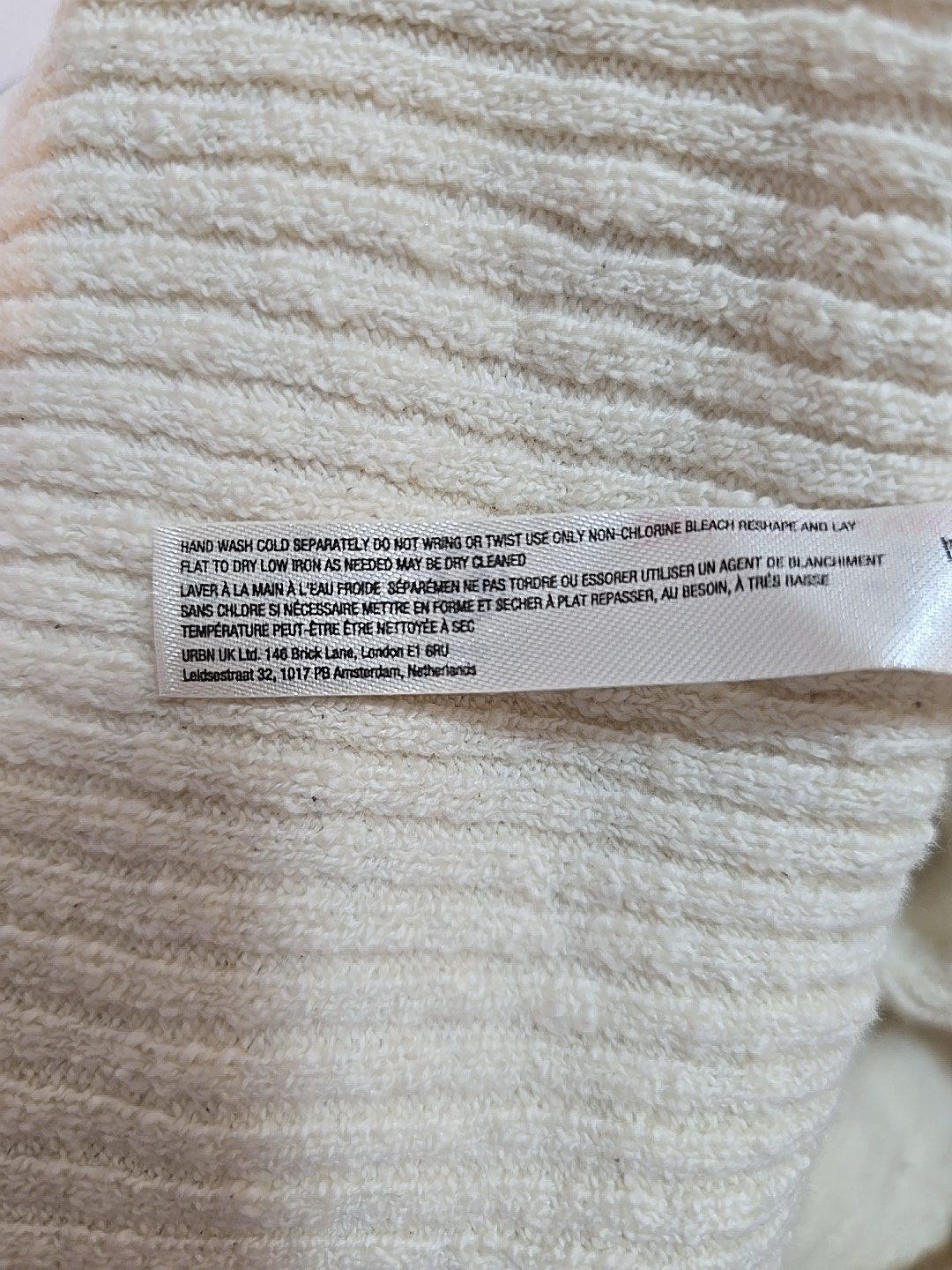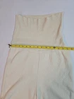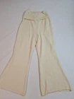 These Free People Beach Women Pants in size L feature a stylish ribbed knit design with a foldover waist and flare legs, perfect for the beach or casual outings. The pull-on closure and elastic waist offer comfort and convenience, while the high-rise waist adds a flattering touch. Made from a blend of nylon and cotton, these pants are suitable for year-round wear and can be hand washed for easy care. The beige color and solid pattern make them versatile for various occasions, and the relaxed fit ensures a comfortable and stylish look. waist laying flat 15" hips laying flat 19.5" inseam 24" smoke free home ships next business day