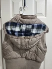 The Free People Beige Puffer Vest in size Large is a stylish and practical outerwear piece for women. With a plaid lining and detachable hood, this mid-length vest is perfect for the winter and fall seasons. Made from durable nylon, this sleeveless vest features a zip closure and is machine washable for easy care. The beige color and classic outdoor theme make it versatile for casual occasions, while the regular fit ensures comfort and functionality. Perfect for staying warm and fashionable in colder weather, this Free People vest is a must-have addition to any winter wardrobe.
