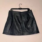Free People Black Front Zip / 2 Buttons Faux Leather A Line Mini Skirt Size: 12 NWOT! Like New!!