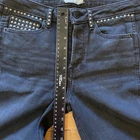 Elevate your denim collection with these stylish Free People skinny jeans in a classic black color. These jeans feature a mid-rise waist, 5-pocket design, and a button fly with stud accents. The distressed, ripped, and raw hem add a trendy and edgy touch to your outfit. Crafted from a cotton, polyester blend with spandex, these jeans provide a comfortable and flattering fit. They are perfect for any season and can be paired with any top or shoes for a chic and modern look. Machine washable for easy care, these jeans are a must-have for any fashion-forward woman.