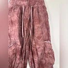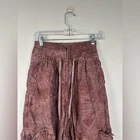 Sz 0 Parachute style trousers featured in a slouchy silhouette. High-waisted Drawstring waist Adjustable ties on the cuffs Cargo pockets Four-pocket style Front zip closure Machine Wash Cold Approximate Measurements for size 0 Inseam:24in Waist:12in Rise:14in