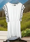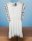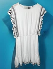 Free People Dress White Gauze Flutter Ruffle Sleeve Sundress Black Embroidery Backless Cut-Out Ruffle Mini Women's Size Medium Bust 38 Elastic Waist 30 -38 Length 36 inches. Viscose modal, no belt, logo plaque loose on one side boho festival hippie peasant retro 70s