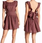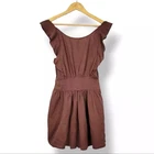 Free People Erin Linen Ruffle Sleeve Open Tie Back Skater Dress in Brown Size S
