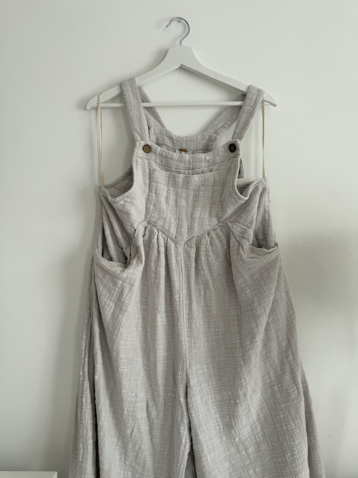 Free People women’s overalls in a soft gray tone with a beautiful textured linen-blend fabric. Relaxed, airy silhouette with wide legs, adjustable shoulder straps, and button details for an effortless boho look. Lightweight and breathable — perfect for warm weather, layering, travel, or everyday casual wear. • Brand: Free People • Size: Small (S / P) • Color: Gray • Style: Overalls / jumpsuit / boho / relaxed fit • Fabric: Linen blend • Made in India • Condition: excellent condition Please review all photos and measurements carefully before purchasing.