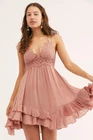 Your new go-to slip dress, this flowy frock features our best-selling Adella bralette at the top with boho crochet lace details and a light and airy skirt with a tiered hem. Smocked stretchy back Lined at bust Semi-sheer Fabric Viscose Cotton Blend