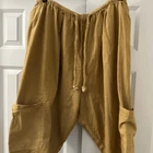 Effortlessly easy, these laidback pants are featured in a soft cotton-linen blend and slouchy, harem-style with a drawstring waistband and tapered legs. Fit: Mid-rise, cropped-length Features: Soft cotton-linen blend, adjustable drawstring waistband, drop-crotch style with tapered legs, oversized patch-pockets at legs Why We ❤ It: These breezy pants pair perfectly with all your favorite tees and tanks. Care/Import Machine Wash Cold Import 93% Cotton, 7% Linen 🔥🔥Brand NEW with/without tag . May have been tried in store but in new/good condition . LINE TRU TAG TO IS PREVENT STORE RETURNS 🔥🔥 Dec50-50