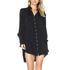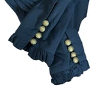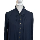 Free People Lieutenant Shirt Dress Mini Navy Blue Tunic Button Front Size M Flaw * 100% rayon, * Fully lined, * Front button closure, * Ruffled trim, * Gathering detail, Approximate Measurements taken flat:pit to pit 23, length 33-35 Pre-owned; small hole at sleeve. Please see all photos for condition details.