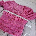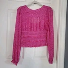 Chic and stylish floral pink top. Features a flattering fit and elegant design. Smocked bodice, long sheer baloon sleeves with fringe cuffs. It's in excellent condition. Please see pictures for details and let me know if you have any questions I ship the next business day