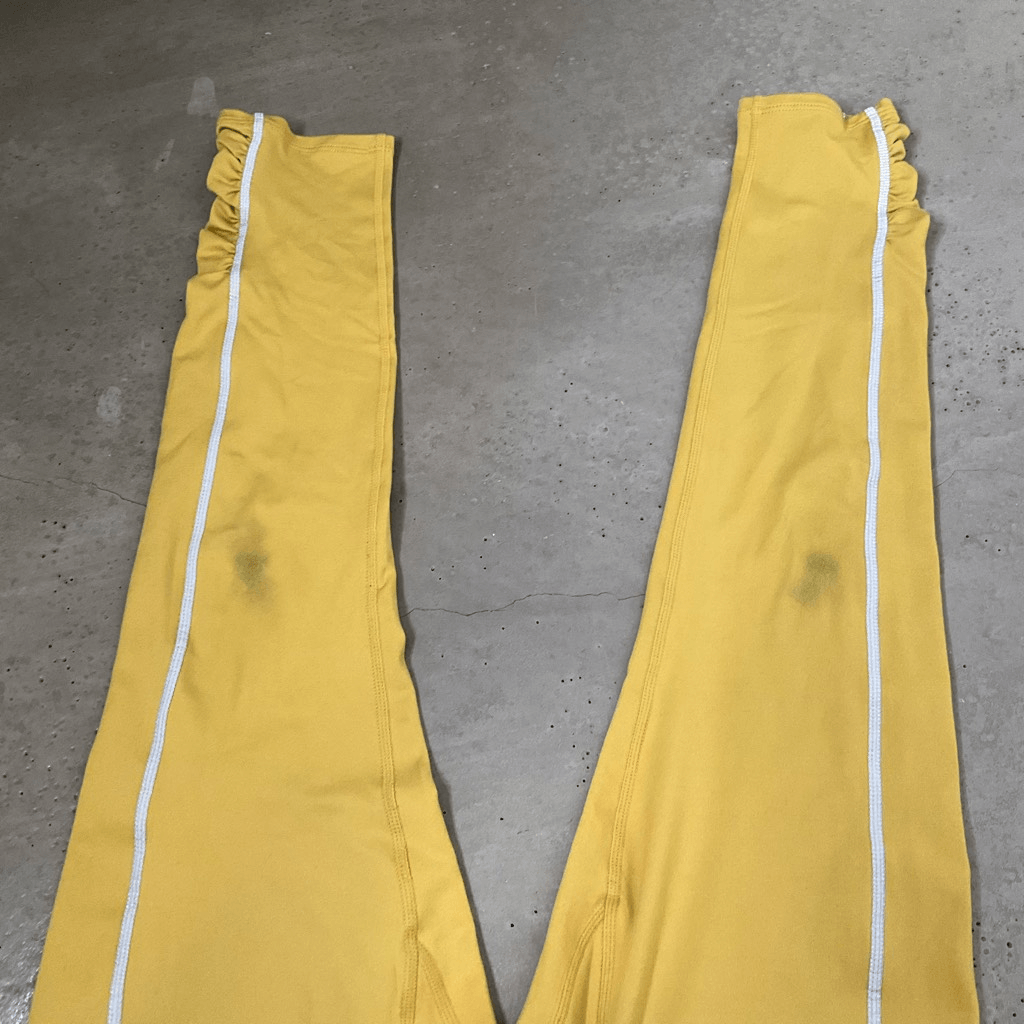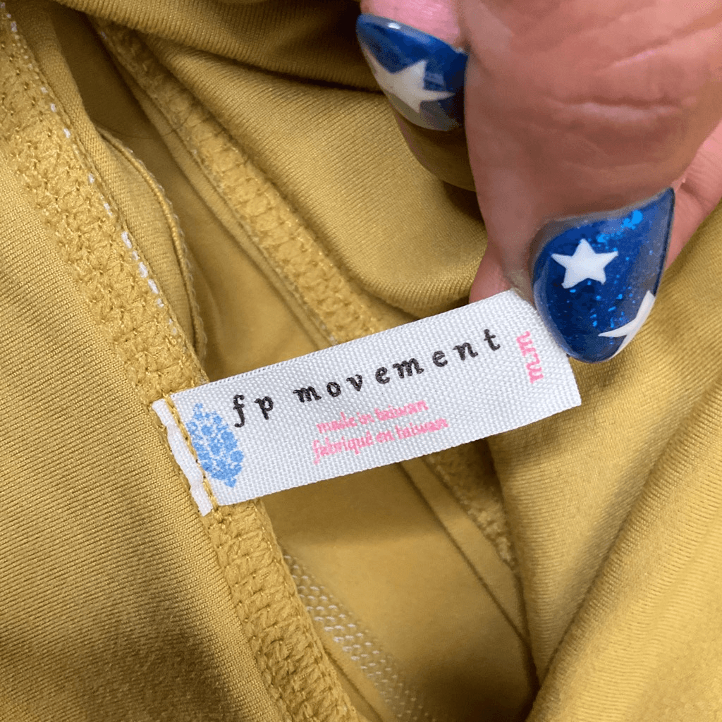 Free People Movement You’re A Peach Leggings Perfect for anything from a nighttime run to your morning yoga class, these squat-proof leggings are both flattering and functional. The fit: High-rise waist, ⅞ cropped ankle The fabric: Sweat-wicking; ultra-compressive; reinforced waistband The features: Squat-proof, figure-flattering reflective trim, ruched ankles Best for: Your sweatiest HIIT workouts in the gym or outdoors Zipper pocket Knees show wear, see photo Color: Yellow Size: Medium Fair Condition