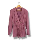 Excellent condition So cool and classic, this timeless blazer is featured in a staple silhouette and luxe linen fabrication with defined shoulders and waist tie detail for added shape. • Contrast buttons • Flap patch pockets • Classic collar detail Sleeve Length: 24.75 in • Bust: 39.5 in • Length: 29.5 in