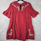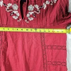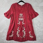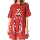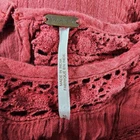 Beautiful classic style Free People dress. Has embroidery and knit details throughout. In a crinkly almost gauze style fabric. Has a keyhole neckline on the back with a button closure. In excellent pre owned condition, see photos for full details.