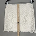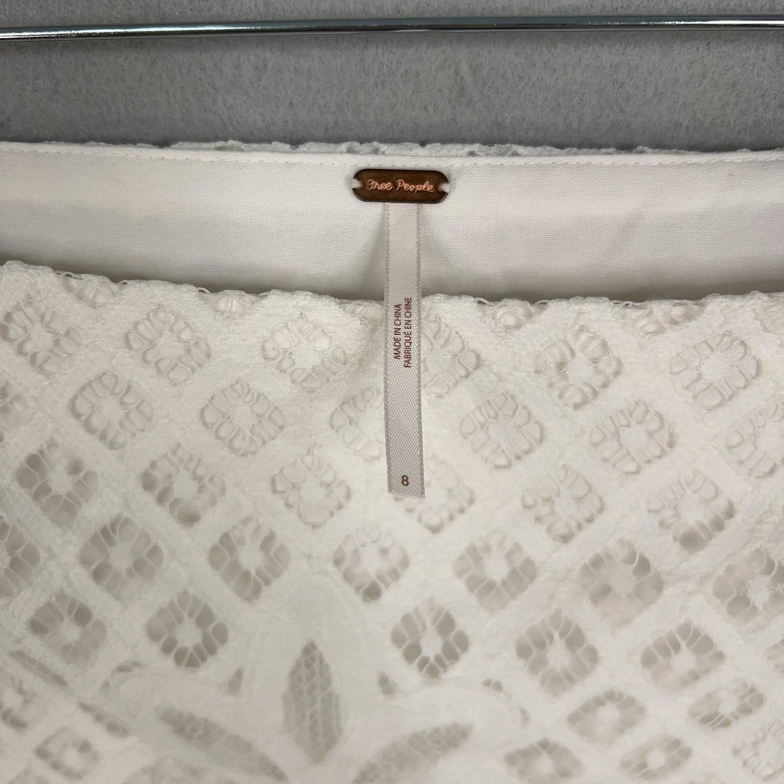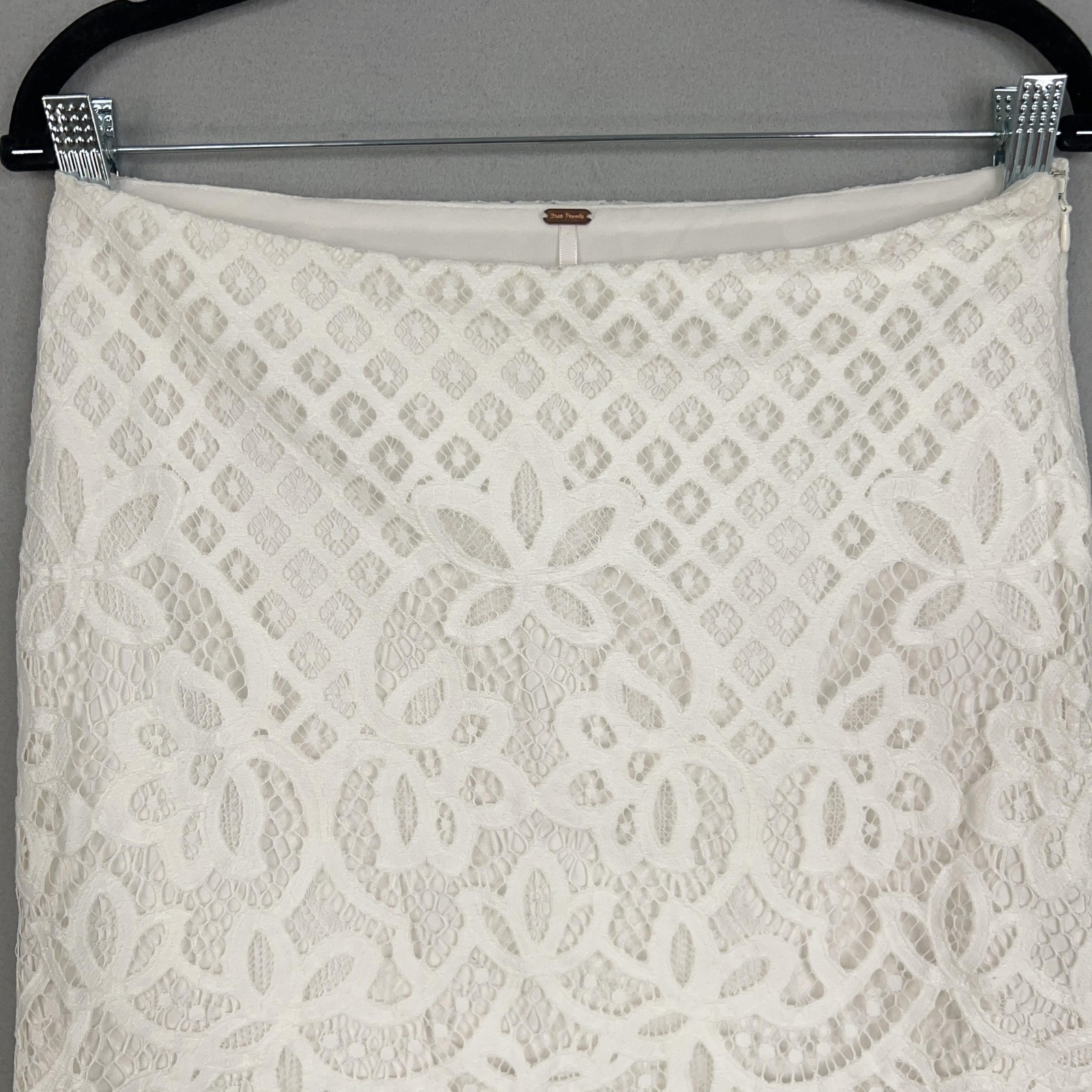 Light wear with minimal signs of use. No obvious exterior flaws noted. A couple tiny loose threads at the lace edge typical of this fabric. Please review photos. Brand: Free People Item: Women's lace mini skirt Color: White/Ivory Size: 8 (per interior size tag) Design: Floral lace overlay with geometric lattice pattern; scalloped eyelash hem Lining: Fully lined for coverage and comfort Details: Free People metal logo tag at inner waistband; care/content label present Style/Occasion: Romantic boho look suitable for dressy, party, or bridal events Notes: Refer to photos for fabric texture and lace detailing; measurements shown with a ruler in photos are for reference only and not included here Measurements: - Previous washings may change the sizing written on the tag. - Please refer to the photos above for all measurements. - Please compare our measurements to that of one of your favorite garments. - Please note, item measurements are approximate . All items are bagged and sealed after being photographed, then stored in a smoke free environment to ensure the item is exactly the same as when photographed. All items have been washed per eBay standards & policies. I carefully package and ship daily. Feel free to contact me with any questions.
