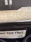 The Free People Women's Black Faux Leather High Rise Penny Pull On Flared Pants in size 27 are a stylish and versatile addition to any wardrobe. Made from a combination of polyurethane and viscose, these pants feature a high rise waist with a flat front design and a flared leg style. Perfect for various occasions such as travel, parties, or casual outings, these pants have a zip and pull-on closure, pockets for added convenience, and an ankle-length inseam of 31 inches. With a sleek black color and the brand's signature style, these pants are a must-have for any fashion-forward woman.