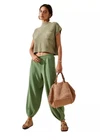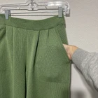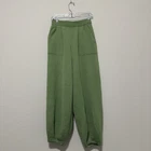 Free People Womens Freya Sweater Pants Wide Leg Pleated Green High Waisted Small Pre-Owned Excellent Used Condition Size small Thicker quality pants Barrel leg style Wide leg Cinched ankle Elastic waist Flat lay measurements: Waist: 12.5” Rise:10” Inseam: 27.5”
