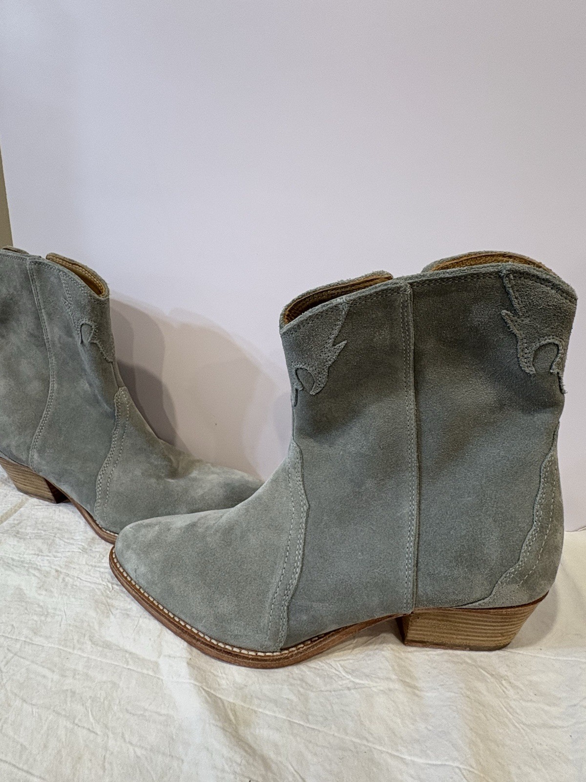 The Free People Women’s Frontier Dusty Western Boots in size US 39 are stylish and trendy mid-calf boots with a pointed toe and solid pattern. Made of suede with a low block heel, these boots feature a pull-on closure and a Western style. The boots come in a beautiful blue color with a dusty character, perfect for adding a touch of flair to any outfit. Designed by the popular brand Free People, these boots are a must-have for any fashion-forward woman looking to make a statement.