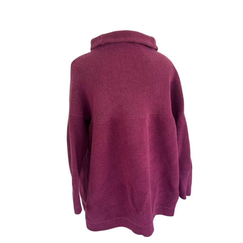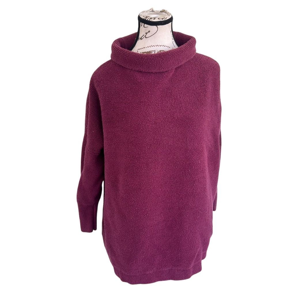 The Free People Women's Purple Ottoman Slouchy Tunic Sweater in size S is a cozy and stylish option for the fall and winter seasons. Made from heavy knit fabric, this relaxed fit sweater features a cowl neck and long sleeves, perfect for casual occasions or travel. The oversized, solid purple color adds a bohemian touch to the tunic style sweater, making it a versatile and comfortable addition to any wardrobe. Please note some pulling present see pictures.