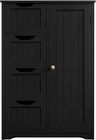 Product Description Wooden Bathroom Cabinet 4 Drawers & Cupboard Bathroom Storage Unit Hallway/Floor Cabinet Gray If extra toiletries and spare towels are piled up in your bathroom ensemble, having a spacious storage cabinet can help you hide all the clutter behind the door and out of sight. This 22” L x 12” W x 32’’ H cabinet has 4 no-handle sliding drawers and 1 roomy cupboard with an adjustable shelf. Once you have it, the storage space in your bathroom, sitting room will be instantly expanded. Its clean-lined design with slatted paneling works well in a variety of aesthetics. Specifications: Material: P2 MDF Overall dimension: 22 x 12 x 32.5'' (LxWxH) Drawer interior size:8.8 x 9.6 x 3.9'' (LxWxH) Shelf size: 10 x 10.1'' (WxL) Adjustable distance between shelves: 6.3''; 8.9''; 11.3'' G.W.: 40.8 lb Color: Gray Bullet Point Sturdy construction Ideal space saver Adjustable shelf height Waterproof surface Safety is priority All-matching design Easy to assemble Product Details Adjustable shelf height Three easy-to-set shelf heights for your different storage needs. Heavy-duty Metal Knobs Vintage metal knobs for good durability and texture. Added Safety Anti-toppling fitting can secure the cabinet to the wall for dual safety. P2 MDF High quality material for you and long-term use. Multi-scenario application Storage Cabinet Bathroom Floor Cabinet Hallway Floor Cabinet Bathroom Floor Cabinet with 2 Doors and 2 Shelves Bathroom Floor Cabinet with 4 Drawers and 1 Cupboard Bathrroom Floor Cabinet with 4 Drawers Bathroom Floor Cabinet with Multiple Tiers Shelves 2-Tier Console Table Add to Cart Add to Cart Add to Cart Add to Cart Add to Cart Customer Reviews 4.5 out of 5 stars 1,312 4.4 out of 5 stars 7,699 4.5 out of 5 stars 2,203 4.6 out of 5 stars 2,911 4.7 out of 5 stars 3,951 Price $69.99 $ 69 . 99 $94.99 $ 94 . 99 $69.59 $ 69 . 59 $76.99 $ 76 . 99 $52.79 $ 52 . 79 Color Grey Grey Grey Grey Grey Materials MDF MDF MDF MDF MDF Overall Dimensions 24 × 12 × 32 inch 26 × 14 × 35.5 inch 12 × 12 × 32.5 inch 22 × 12 × 34 inch 40 x 11.8 x 32 inch Max Weight Capacity Tabletop: 33 lb Each Shelf: 26.5 lb Bottom Board: 26.5 lb Tabletop: 7.2 lb Drawer: 8.8 lb Shelf: 22 lb Tabletop: 19.8 lb Each Drawer: 7.7 lb Tabletop: 51 lb Open Shelf: 22 lb Drawer: 6 lb Movable Shelf: 18 lb Tabletop: 79.4 Pound Shelf:57.3lb s