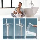 Aolemi Freestanding Bathtub Faucet Floor Mount Tub Filler Single Handle Brass Standing Bathtub Tap with Handheld Spray Swivel Right Angle Spout Polish Chrome 【All Metal Construction】Solid brass, this free standing tub faucet is constructed from the high quality solid brass and polish chrome finished in corrosion and rust-resistant for durability and reliability 【Modern Style】: Simple and elegant style with smooth lines and curves will give your bathroom a sleek, modern update and is suitable for any decorative style. Stable Floor Mount Design will make our freestanding tub filler more stable and will not wobble when the tub filler is turned on. 【Installation】Floor mounted, Include all the installation hardware.Come with 1/2 thread water lines (3/8 thread adapter and 1 pair 8 inch extension water hoses in package for different need). 【Reliable Design】: The design of the bathtub faucet ensures resistance of corrosion and tarnishing,which is also suitable for floor-standing installation.The diverter valve knob to switch water to tub spout or hand shower,make it convenient to flush the bathtub or bathroom after shower. 【What's Included】standing bathtub faucet body, brass faucet tube, handheld shower, cold and hot hose, base cover, mounting hardware and installation instruction. Shipping We offer FREE shipping on all orders! We ship within Three business days of payment, usually sooner. We use a selection of shipping services such as UPS, FedEx, USPS etc. We only ship to the lower 48 states, no APO/FPO addresses or PO Boxes allowed. Local pickups and combined shipping options are not provided at this time. Return You can return a product for up to 30 days from the date you purchased it. Any product you return must be in the same condition you received it and in the original packaging. Please keep the receipt. Payment We accept payment by any of the following methods: PayPal Please pay as soon as possible after winning an auction, as that will allow us to post your item to you sooner! Feedback Customer satisfaction is very important to us. If you have any problem with your order, please contact us and we will do our best to make you satisfied. Contact Us If you have any queries, please contact us via ebay. We usually respond within 24 hours on weekdays. Please visit our eBay store to check out other items for sale! Thank you for shopping at our store.