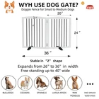 This is a very useful dog gate, it can limit the family pet in a certain place, do not let it run, foldable dog gate can be well blocked in the doorway, corridor and stairs, you can put different shapes according to your needs, pet gate indoor does not need to be installed, easy to expand can be used, folding, convenient storage, you can put it anywhere in the home, Saving space, dog gate for house is fitted with rubber pads at the bottom, so you don't have to worry about scratching the floor. Simple and stylish design with a white exterior that perfectly matches your home decor. FEATURES: 1、Constructed from wood and strong wire 2、Expanded to accommodate almost any width 3、Arrives fully assembled 4、Folding, free-standing design 5、Suitable for dogs of all sizes and breeds 6、Fold down quickly for easy storage. 7、Sturdy, non-slip rubber feet that keep your floors safe from scratches 8、Stylish and elegant look great with any array of decorating styles 【Simple and Firm】 This convertible panel dog gate is a dog fence, Indoor divider, and pet pen all in one. combination of wood and electroplated steel bars . Non-Slip rubber feet to protect your floor. 【Collapsible and Expandable Design】 's dog gate is freestanding and can be folded out into the wide Z-shape allows you to use it in full indoor, double gate, doorways, Stairs, Hallways, or any place in your house. 【2 Panels】 Dog gate is built with 2 separate panels, secured together with sturdy stainless steel hinges. 【No Assembly Required】 Pet gates comes completely assembled already, simply just unfold it and use, it in the area you need. This dog gate is an excellent way to restrict your dog's access to parts of your house while maintaining a modern look. 【Size】: Dog fence opened size:W40"*D0.75"*H24";Collapsed size:W20"*D1.5"*H24".
