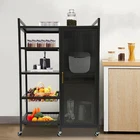 Specification Color: Black Style: Modern Shape: Rectangular Process: Baking Paint Material: Carbon Steel and PVC Installation Type: Floor Standing Assembly Required: Yes Number of Tiers: 4 Top Tier Spacing: 18cm/7.1in Each Bottom Tier Spacing: 22.5cm/8.9in Each Tier Spacing in the Cabinet: 32.5cm/12.8in Product Size: 80*42*110cm/31.5*16.5*43.3 inch Package Size: 115*40*23cm/45.28*15.75*9.06 inch Gross Weight: 16kg/35.27 lbs Net Weight: 15kg/33.07 lbs Package Included 1* Storage Cabinet 6* Universal Wheels 6* Pads Other Accessories for Assembly Standing Kitchen Shelf Storage Cabinet with Door Standing Storage Shelf Description Cleanness and tidiness are a good attitude towards life and will put you and your family in a good mood. Our storage cabinet is made of high-quality material with sufficient storage space and a beautiful and practical design, allowing you to neatly and efficiently organize your belongings and make you feel organized and relaxed. Say goodbye to a cluttered room and enjoy a neater, more efficient life! Key Features Sturdy and Durable: It is made of high-quality carbon steel and PVC with a baking paint process, which is eco-friendly, odorless, anti-corrosion, and rust-resistant , ensuring its beauty and long-time use. Life Assistant: The 4-tier design can effectively organize kitchen utensils, books, towels, toiletries, laundry and other household items. The top platform can hold microwave, rice cooker, etc., while the heightened detachable draining trays can be used separately as a fruit and vegetable cleanup tray for your convenience. Thoughtful Design: The sealed, semi-clear, and magnetically-designed cabinet door allows for convenient opening, prevents dust, moisture, and insects , and also shows inside items elegantly for easy access. In addition, the shelves inside the cabinet can be adjusted to five heights to make it easier for you to place larger cookware or appliances. Move and Fix at Will: Six wheels on the bottom (three with brakes) make it easy to move the product around or hold it in place. Easy to Clean: Thanks to its smooth surface, simple construction,and dustproof door, you can wipe it clean with a damp rag. Simple Installation: With complete accessories and a simple structure, you can put it together by yourself and enjoy the fun of the installation process! Ideal Gift: Thanks to its practicality, it will make a fine gift for family, friends, and loved ones on Christmas, housewarming, birthdays, anniversaries, and holidays. Protective Package: We have used foam wrapping for this product, designed to minimize damage to the product during shipping. Details Convenient Handle: The ergonomic handle can help you open or close the cabinet door more easily. Raised Baffle: The raised top baffle design prevents items you placed from falling. Adjustable Feet: You can replace the bottom wheels with adjustable feet to provide better stability and adapt to uneven floors. Application It is ideal for bedroom, study, nursery, playroom, entryway, living room, kitchen, children's room, bathroom, toilet and so on. It can be used to store dishes, housewares, microwaves, coffee makers, toasters, frying pans, rice cookers, crock pots, vegetable baskets, spice bottles, toys, snacks, towels, paper towels, books, and other daily necessities. Specification Color: Black Style: Modern Shape: Rectangular Process: Baking Paint Material: Carbon Steel and PVC Installation Type: Floor Standing Assembly Required: Yes Number of Tiers: 4 Top Tier Spacing: 18cm/7.1in Each Bottom Tier Spacing: 22.5cm/8.9in Each Tier Spacing in the Cabinet: 32.5cm/12.8in Product Size: 80*42*110cm/31.5*16.5*43.3 inch Package Size: 115*40*23cm/45.28*15.75*9.06 inch Gross Weight: 16kg/35.27 lbs Net Weight: 15kg/33.07 lbs Package Included 1* Storage Cabinet 6* Universal Wheels 6* Pads Other Accessories for Assembly Notes Please check the product style and size before purchasing. Please note that this product does not include any other storage items. Please allow the slight color difference caused by the shooting light and 1-3cm error due to manual measurement and make sure you do not mind before ordering. Payment Delivery details Terms of sales About us Contact us Payment We accept ebay payment 。 Fees such as import duties, taxes are not included in the item price or shipping costs. These charges are the buyer's responsibility. Delivery details Shipping: 2-9 working days to: USA Terms of sales We maintain high standards of excellence and strive for hundred percent customer satisfaction. Feedback is very important to us. We hope that you contact us immediately before you give neutral or negative feedback, so that we can address your concerns. It is impossible to address issues if we do not know about them! About us Your satis faction is our ultimate goal. We work hard to earn your trust and future business. Our certified technicians have tested each item before shipping. The unit comes with 1 year limited warranty on all manufacturing defects. a) If you receive a defective item, you may return it or ask for a discount. Please contact us within 14 days after you receive the package. b) What you returned must be intact and in its original packaging as re? u. Customer is responsible for shipping costs of the returned item. c) We will cover the cost of shipping back t with the shipping rate indicated in the registration page. We will send you a new unit or refund the full payment you paid. Thank you. Contact us Business Hour Business Hour: Monday To Friday: 8:30 AM to 5:00 PM (Beijing China time) Due to time zones, our reply to your questions may not be immediately. But within above working time, we will reply your email within 24 hours. If it's non-workdays, please kindly be patient and wait till Monday. Please contact us with ebay message. Please feel free to contact us if you have any questions. Monday To Friday: 8:30 AM to 5:00 PM (Beijing China time) Due to time zones, our reply to your questions may not be 