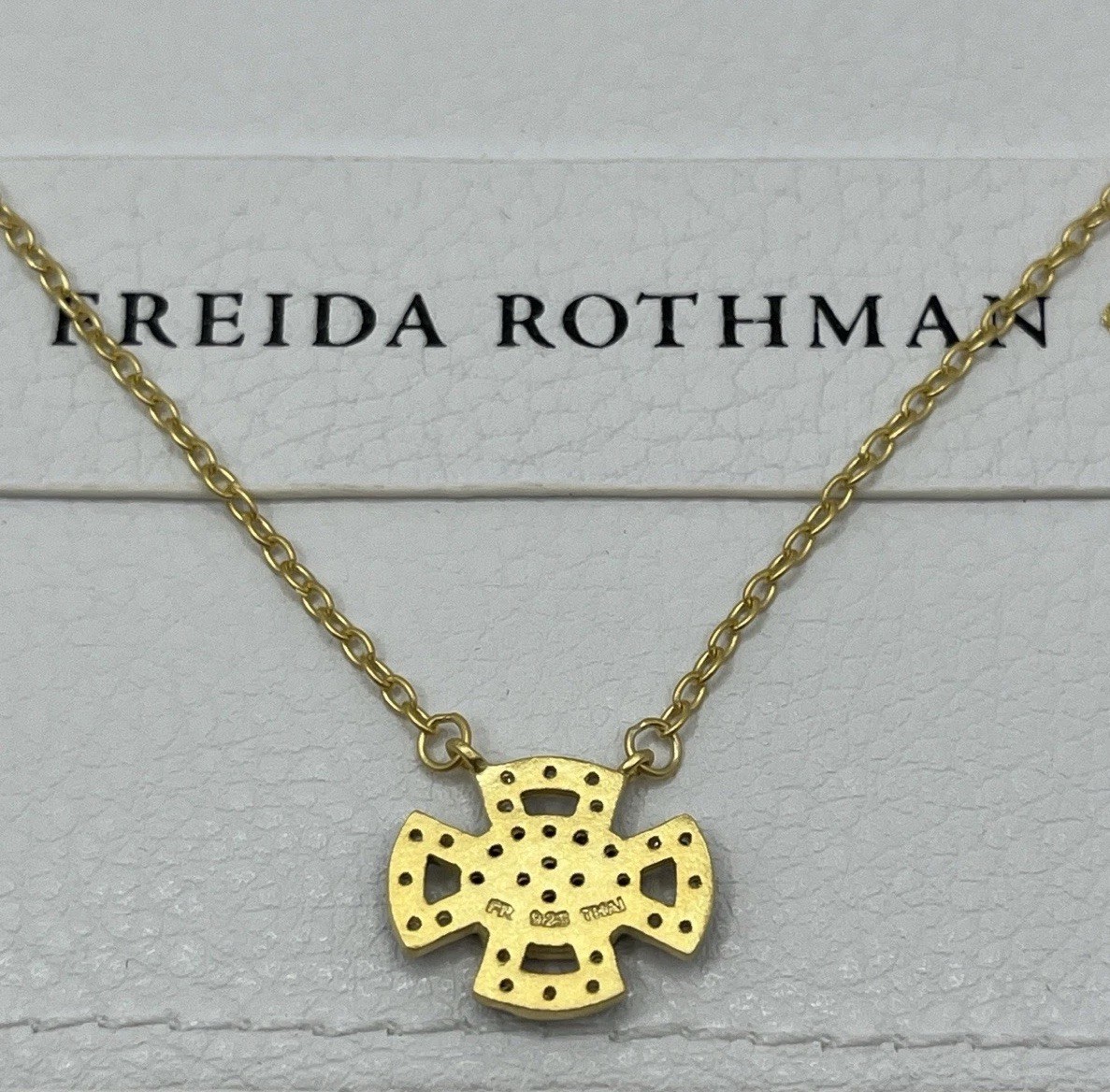 Freida Rothman 14k Gold Over Sterling Silver Maltese Cross CZ Stones 16-18 In 14k gold plated Sterling silver core Handset CZ stones Adjustable 16-18 inches