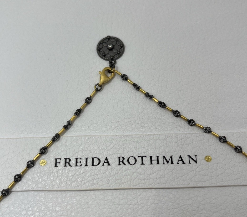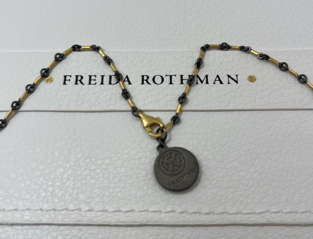 Freida Rothman Black & Gold Signature Bar Link Necklace 18 in NWOT 14k gold & rhodium plated Sterling silver core Comes with Freida Rothman giftable box