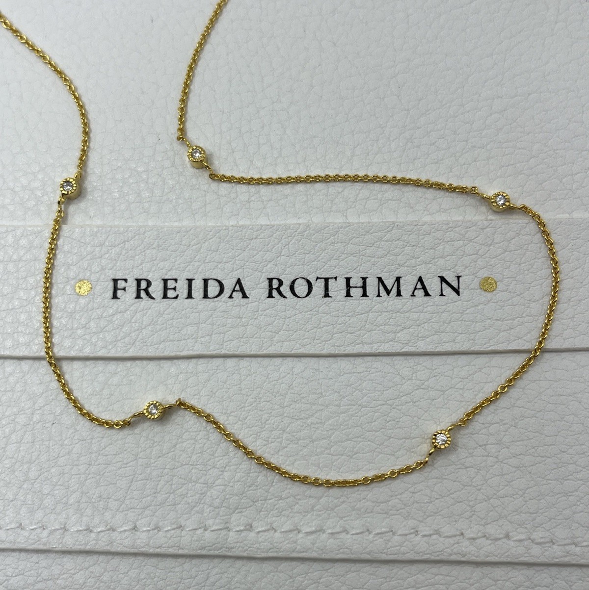 Freida Rothman Gold Tone White CZ Bezel Set Station Necklace 36 Inch 14k gold finish Sterling silver core Bezel set stones