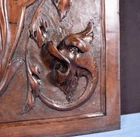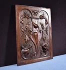 This hand carved antique panel is from France and it dates to the late 1800's. It is solid walnut stained to a warm dark color. The carving is very deep and three dimensional: notice the fine detail in the Griffins. This panel was originally the center door in a large French buffet. It is in very good antique condition with only minor nick and scratches. Dimensions: 21" tall, 16" wide, 1.25" thick. Description of item for sale: This hand carved antique panel is from France and it dates to the late 1800's. It is solid walnut stained to a warm dark color. The carving is very deep and three dimensional: notice the fine detail in the Griffins. This panel was originally the center door in a large French buffet. It is in very good antique condition with only minor nick and scratches. Dimensions : 21" tall, 16" wide, 1.25" thick. (4821) Professional Shipping Services : We use top quality packing materials-new boxes and new or clean recycled Styrofoam peanuts and bubble wrap. We pack and ship promptly. We fully disclose shipping costs-we may not always be the cheapest, but you can count on your valuable purchase arriving quickly and undamaged. We welcome Local Inspections and Pickups : If you live in the area, you’re welcome to come by to check out items we’re auctioning and to pick up your purchases with no shipping or pickup charges. Get images that make Supersized seem small. THE simple solution for eBay sellers. Track Page Views With Auctiva's FREE Counter Listing and template services provided by inkFrog