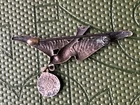 French Antique Victorian Brooch - Bird holding a small Religious medal - 2" by 1 1/8" Track Page Views With Auctiva's Counter We invite you to follow our store to avail of the best daily offers on your favorite items. As a token of appreciation, we extend discount coupons to our returning customers. To further enhance your shopping experience, we combine shipping costs, thus obviating the need to pay such costs individually for each item. By doing so, we ensure maximum satisfaction to our valued customers.