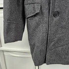 French Connection mens charcoal grey Pea Coat, size 42 which is approximately a UK M to L. Double breasted. Fully lined. Wool (60%) blend fabric. In good used condition, one small split in the lining as seen in pictures, not seen when on. Approximate Measurements in inches: Armpit to armpit: 22 Length: 34