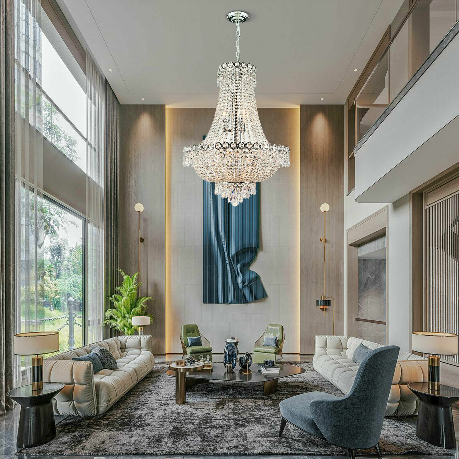 About this item DIMENSIONS OF CEILING LIGHT: This crystal fixture measures 20" D x 28" H CRYSTAL CEILING FIXTURE: Solid brass frame construction in polished chrome finish and finely cut bead strands of 30% full lead octagon crystal in graduating sizes, this elegant crystal light fixture will give any room sparkle and glamour NUMBER OF LIGHT BULBS: This fixture accommodates up to twelve 40 watt maximum candelabra base incandescent E-12 bulb (not included) LISTED FOR DRY LOCATIONS: You can safely use this fixture indoors or outdoors as long as the mounting location stays dry Featured in the decorative Empire collection Body Dimension: 20" Diameter x 28" Height (Round Shape) and includes 72" adjustable chain for hanging Number of Light: Accomodates up to 12 40w max (40w recommended) ca Welcome to the goforbigsales! Description About this item DIMENSIONS OF CEILING LIGHT : This crystal fixture measures 20" D x 28" H CRYSTAL CEILING FIXTURE : Solid brass frame construction in polished chrome finish and finely cut bead strands of 30% full lead octagon crystal in graduating sizes, this elegant crystal light fixture will give any room sparkle and glamour NUMBER OF LIGHT BULBS : This fixture accommodates up to twelve 40 watt maximum candelabra base incandescent E-12 bulb (not included) LISTED FOR DRY LOCATIONS : You can safely use this fixture indoors or outdoors as long as the mounting location stays dry Featured in the decorative Empire collection Body Dimension: 20" Diameter x 28" Height (Round Shape) and includes 72" adjustable chain for hanging Number of Light: Accomodates up to 12 40w max (40w recommended) candelabra base incandescent E-12 bulb This stunning crystal light fixture only uses the best quality material and workmanship ensuring a beautiful heirloom quality piece. Featuring a radiant chrome finish and finely cut premium grade crystals with a lead content of 30%, this elegant wall sconce will give any room sparkle and glamour. This modern looking line of fixtures comes in different shapes and sizes for the perfect room fitting; any bedroom, bathroom, hallway, living room, dining room or foyer. Tips: -Please make sure the light is securely supported and is disconnected from power when installing. -Installing the light bulbs before hanging the crystals makes the installation easier. Payment Delivery details Terms of sales About us Contact us Payment We accept ebay payment 。 Fees such as import duties, taxes are not included in the item price or shipping costs. These charges are the buyer's responsibility. Delivery details Shipping: 2-9 working days to: USA Terms of sales We maintain high standards of excellence and strive for hundred percent customer satisfaction. Feedback is very important to us. We hope that you contact us immediately before you give neutral or negative feedback, so that we can address your concerns. It is impossible to address issues if we do not know about them! About us Your satis faction is our ultimate goal. We work hard to earn your trust and future business. Our certified technicians have tested each item before shipping. The unit comes with 1 year limited warranty on all manufacturing defects. a) If you receive a defective item, you may return it or ask for a discount. Please contact us within 14 days after you receive the package. b) What you returned must be intact and in its original packaging as re? u. Customer is responsible for shipping costs of the returned item. c) We will cover the cost of shipping back t with the shipping rate indicated in the registration page. We will send you a new unit or refund the full payment you paid. Thank you. Contact us Business Hour Business Hour: Monday To Friday: 8:30 AM to 5:00 PM (Beijing China time) Due to time zones, our reply to your questions may not be immediately. But within above working time, we will reply your email within 24 hours. If it's non-workdays, please kindly be patient and wait till Monday. Please contact us with ebay message. Please feel free to contact us if you have any questions. Monday To Friday: 8:30 AM to 5:00 PM (Beijing China time) Due to time zones, our reply to your questions may not be immediately. But within above working time, we will reply your email within 24 hours. If it's non-workdays, please kindly be patient and wait till Monday. Please contact us with ebay message. Please feel free to contact us if you have any questions.