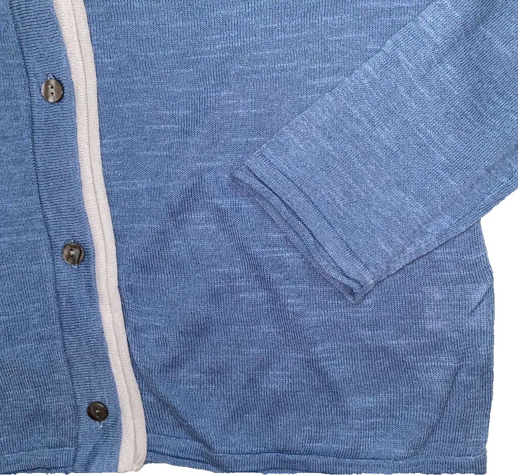 FRESH PRODUCE NEW WITH TAGS A timeless essential, The deep dive blue Piper Cardigan is the perfect grab-and-go layering piece for any occasion. Featuring a vapor gray border trim. Cotton, Linen Imported. Misses size: Small Bust: 38" Measurements are approximate.