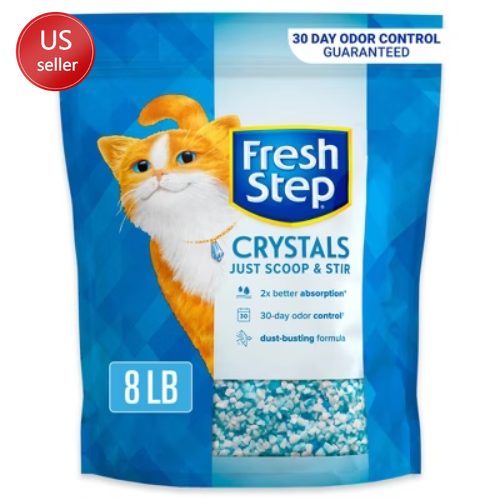 Dear Valued Customers, Before you place your order, we’d like to share a few important details to ensure a smooth shopping experience: Fresh & Long-Lasting Products: All items are recently produced with a shelf life of 12+ months. If you encounter any issues, simply contact us for a full refund—no questions asked. Free Shipping (with Some Limitations): Currently, we cannot deliver to warehouse addresses or forwarding addresses. We’re actively working to expand our shipping coverage, but if your location isn’t serviceable, you’ll receive an automatic full refund—no risk to you. Eco-Friendly & Branded Packaging: To keep costs low (and pass the savings to you!), we ship in recyclable boxes with our logo. Your satisfaction is our priority. If you have any questions, just reply to this message—we’re happy to help! Thank you for trusting us. Jessica Description Fresh Step Crystals Cat Litter offers easier cleanup and stronger odor protection to simplify litter box maintenance. Featuring 30-day odor control, Fresh Step cat litter crystals have two times better absorption and stop odor five times better than the leading clay litter (1,2). This keeps your home smelling fresh with less work and less litter. Made with your cats health and happiness in mind, Fresh Step crystal cat litter is gentle on paws to keep your cat comfortable. The low-dust formula contains small crystals that minimize dust to keep your floors and surfaces cleaner. These lightweight, easy-to-carry crystals make cleaning and changing the kitty litter box a breeze. Just scoop and stir crystals daily for maximum performance. Enjoy more catnaps and cuddle time with your kitty when you choose Fresh Step litter. (1) With Ammonia Technology (2) vs. clay clumping litterUsage Directions: Fill your clean litter box with at least 1.5 inches of Fresh Step Crystals litter. For best results, do not add any other litter products or additives to the box. Regularly remove solid waste, and dispose in trash. Do not flush. Once every 20 to 30 days, empty entire litter box. Dispose of used litter in trash. For more than one cat, shorten the usage cycle. Recommended litter replacement for 2 cats every 10 to 15 days, 3 cats every 7 to 10 days.Caution Statements: As a reminder, especially to pregnant women and immunosuppressed persons, cat feces can sometimes transmit a disease called toxoplasmosis. Therefore, always remember to wash hands thoroughly after handling used cat litter. For further information, consult your doctor. Unused cat litter poses no toxoplasmosis threat. Caution: Do not use this product as a traction aid because product becomes slippery and slick when wet. highlights CRYSTAL CAT LITTER: One 8-lb. bag of Fresh Step Crystals Cat Litter, with easier cleanup and stronger odor protection to simplify litter box maintenance TOUGH ODOR CONTROL: Fresh Step Crystals have two times better absorption and stop cat urine odor five times better for up to 30 days of odor control (1,2) LIGHTWEIGHT CAT LITTER: Crystal cat litter is easy for you to carry and gentle on your cats paws LOW-DUST FORMULA: Small crystals minimize dust to keep surfaces in your home cleaner JUST SCOOP AND STIR: Lightweight Fresh Step crystal cat litter is easy to scoop and makes litter box changes a breeze FIND YOUR FRESH STEP: Whether you have one fab feline or a family of fur friends, explore Fresh Steps full line of cat litter formulas to find the purr-fect litter for you