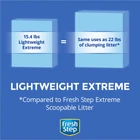 Fresh Step Light Weight Cat Litter Extreme With Febreze Freshness gives you 10-day odor control in your cat's litter box using a clumping litter formula that's 30% lighter (1). This light weight cat litter is easy to lift, carry and pour, while giving you the same number of uses as a 22 lb. box (1). Featuring a tough odor-fighting formula, Fresh Step Extreme cat litter harnesses the power of Febreze to neutralize unwanted litter box smells for 10 days of odor control guaranteed (2). Fresh Step cat litter Extreme features ClumpLock technology that locks in liquid and cat urine odor on contact to form tight clumps for easy scooping. In addition to easy cat litter clumping, this Fresh Step clumping cat litter has a low-dust formula to help keep your floors and other surfaces cleaner. Enjoy more catnaps and cuddle time with your kitty when you choose Fresh Step cat litter. (1) vs. Fresh Step Extreme Scoopable Litter (2) See package for more information on terms and conditions On Sep 9, 2024 at 18:35:25 PDT, seller added the following information: